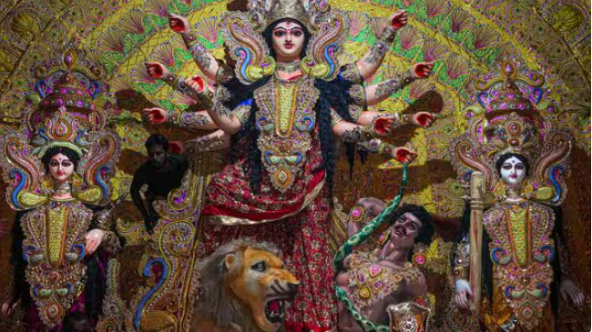 This year, devotees believe Goddess Durga will arrive on an elephant. Idol makers are giving final touches to life-size clay figures of Durga slaying Mahishasura, while temples and mandops prepare with decorations, lights, and devotional music.